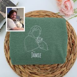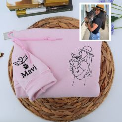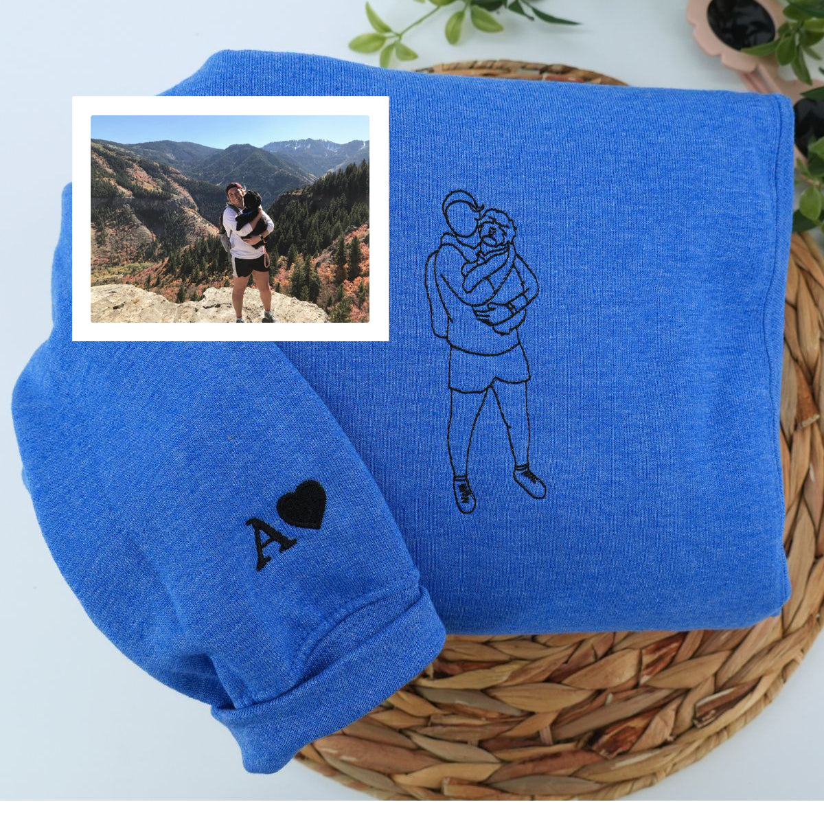 Custom embroidered sweatshirts and hoodies featuring personalized line art pet and owner portraits. Made with soft, premium materials and precise embroidery, these sweatshirts celebrate the special bond between you and your pet. A unique and thoughtful gift for pet lovers, ideal for birthdays, holidays, or any occasion. Get your custom embroidered pet and owner portrait sweatshirt today and wear your love proudly.