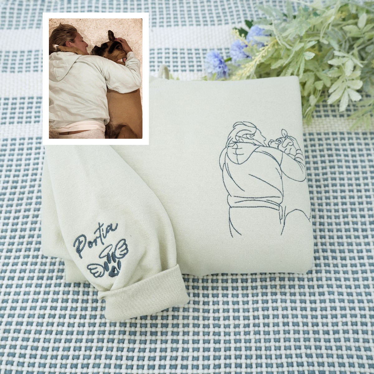 Custom Embroidered Pet & Owner Portrait Hoodie – Personalized Pet Lover Gift