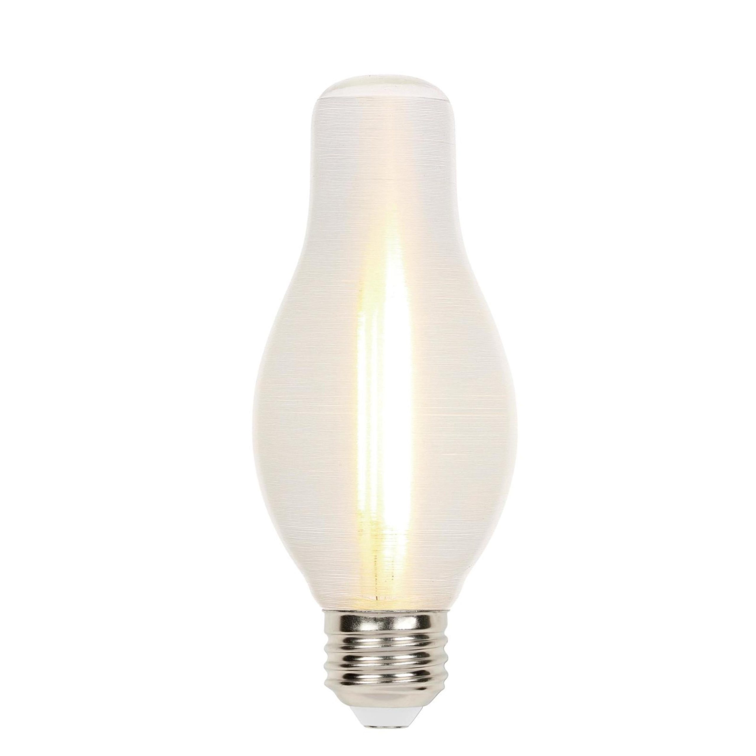 The Westinghouse 6-pack of 6.5W Glowescent H19 LED Dimmable Light Bulbs perfectly blends decorative appeal and energy efficiency. These LED bulbs with a distinctive spun-satin coating illuminate instantly and are ideal for outdoor lanterns, post-top lights, rustic chandeliers, and wall fixtures where the bulb is visible. They create a gas-flame atmosphere enhancing the overall light design. Rated for damp locations and can be used in enclosed fixtures. Long-lasting LEDs are mercury-free, reducing their environmental impact.